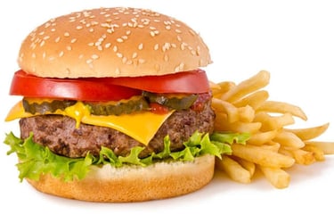 Spacious and stylish, offering the full menu experience including burgers and fries.